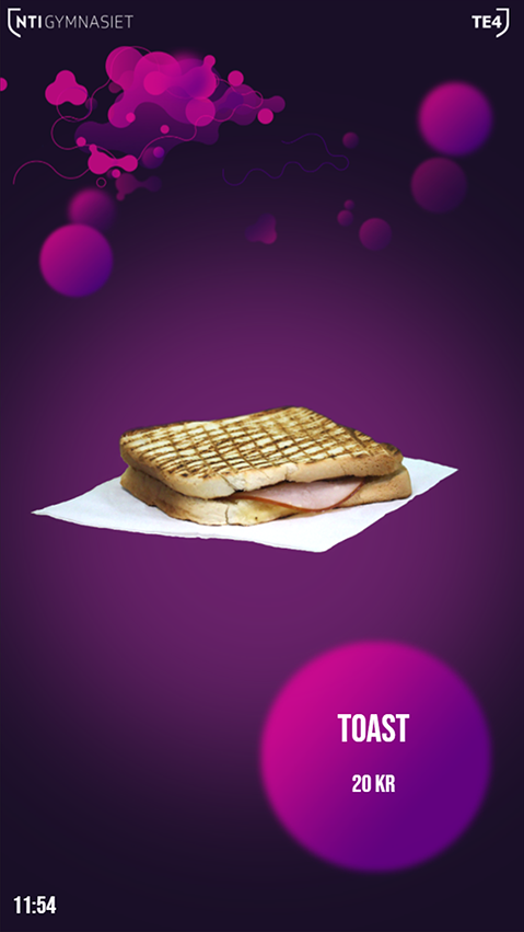 Here is a sample of the screen displaying a toast and its price. I did make it appetizing afterall.
